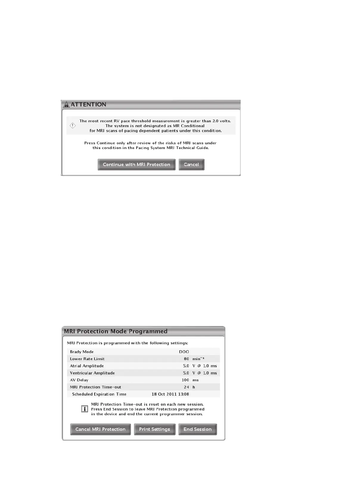 pacing will occur in MRI Protection Mode, or if the user elects to continue with MRI Protection