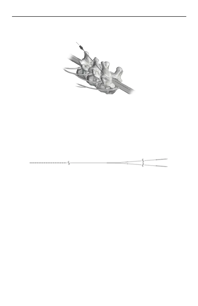 7. Advance the lead to the appropriate vertebral level under uoroscopic guidance. A sufcient length of lead