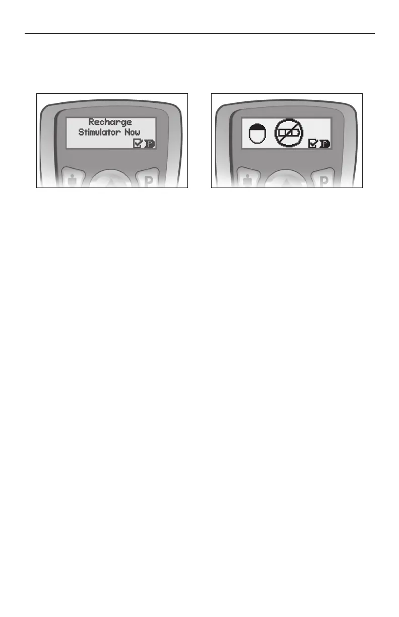 appear on the Remote Control: “Recharge Stimulator Now.” After stimulation stops, communication with the