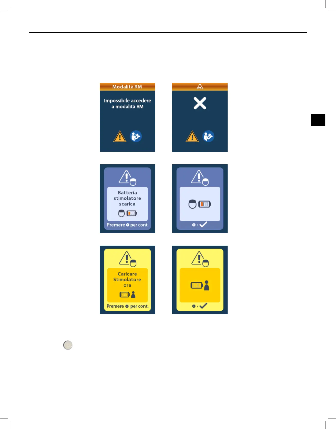 la batteria dello Stimolatore non è completamente carica, il Telecomando visualizzerà uno dei seguenti