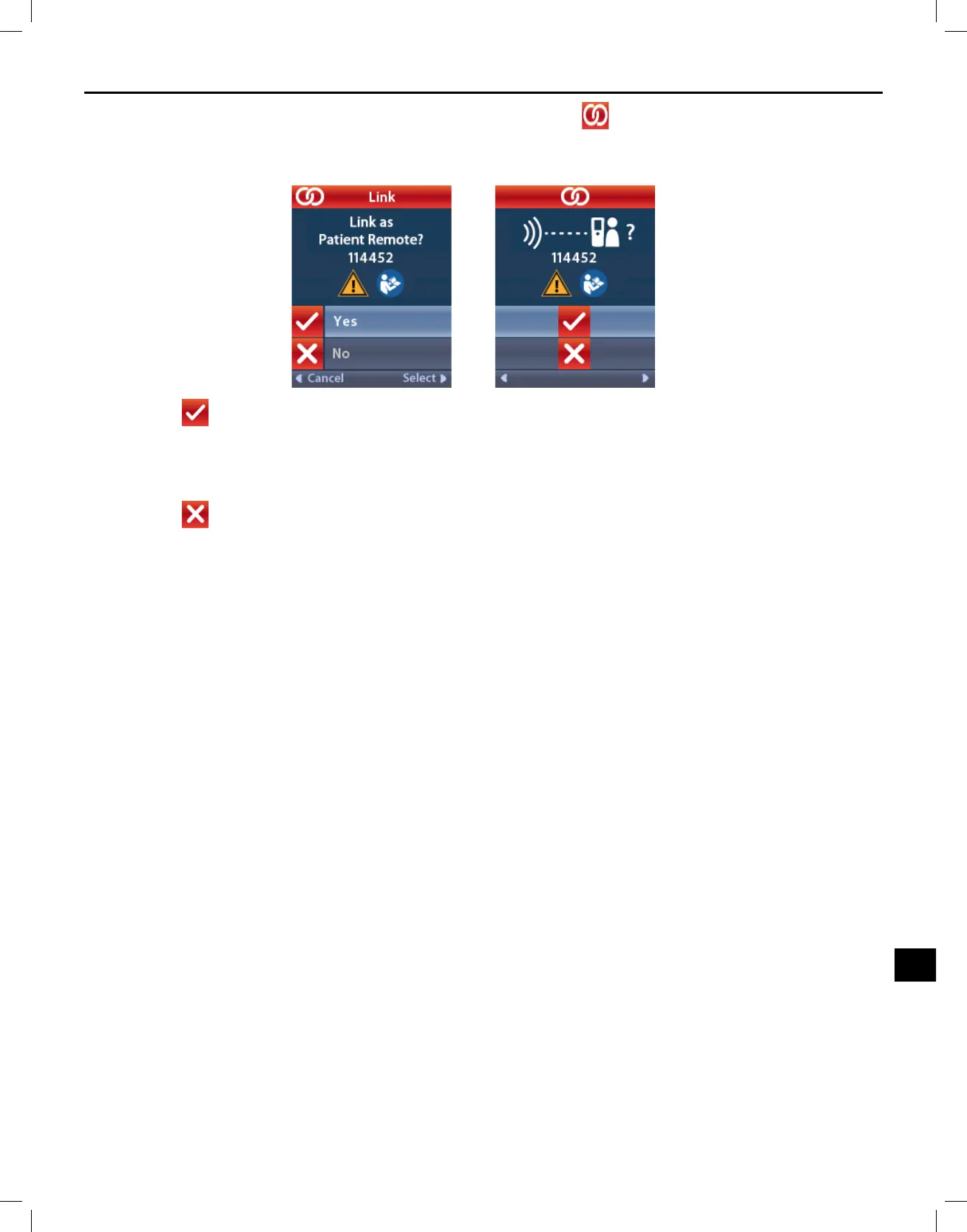 5. Selectați Yes (Da) pentru conectare ca Patient Remote (Telecomandă pacient). O Telecomandă