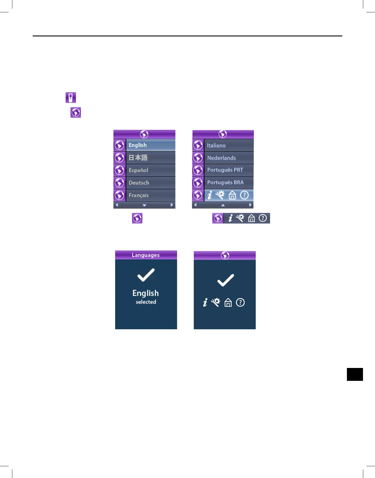 Ecranul Languages Conrmation (Conrmare limbi) este așat pentru a conrma selecția.