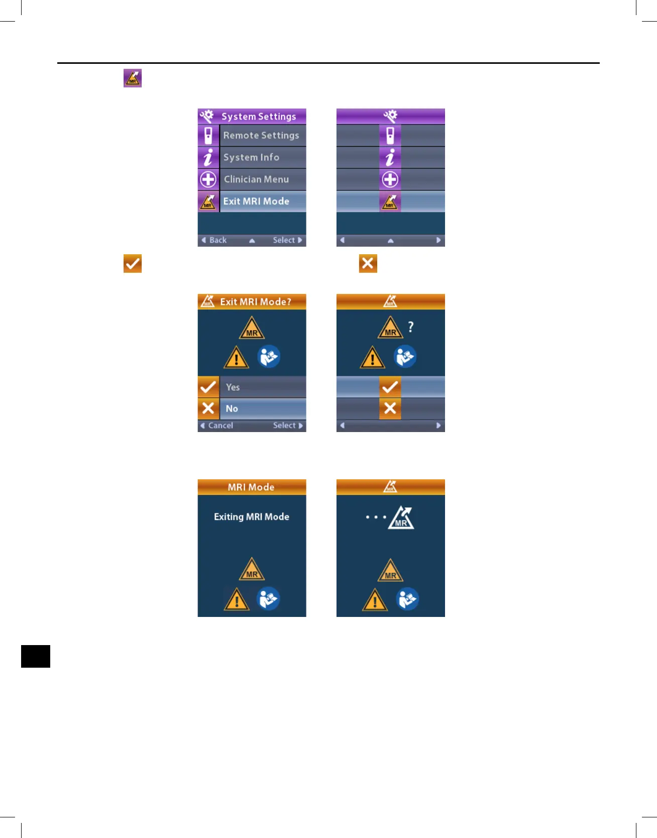 7. Stimulatorul efectuează o serie de vericări înainte ca modul IRM să e dezactivat.