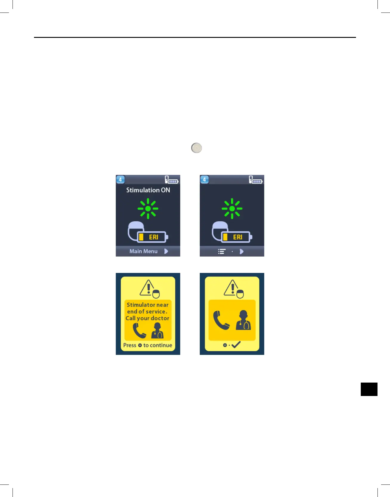 Acest ecran este așat atunci când Stimulatorul nereîncărcabil implantat este aproape de nalul de