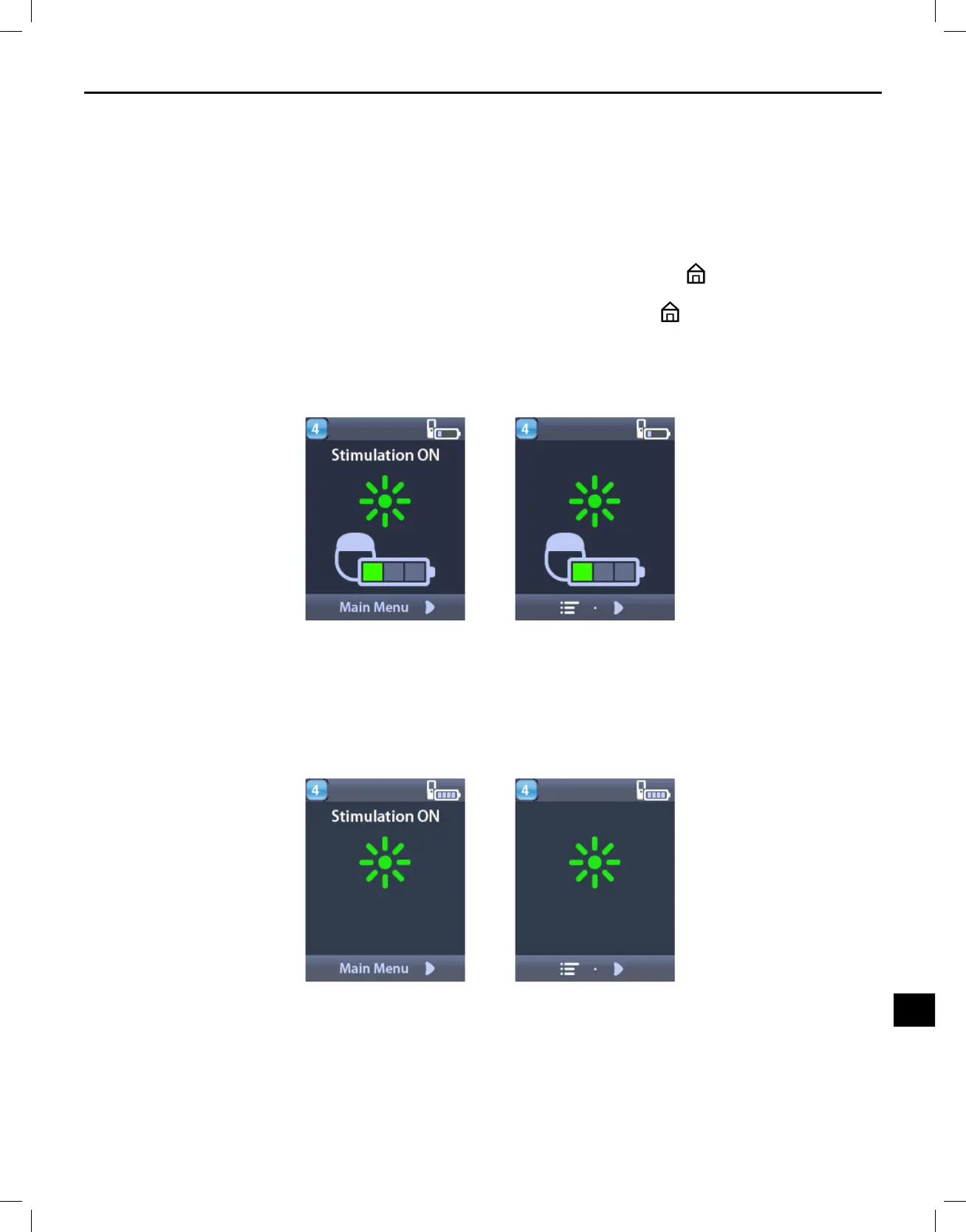 s stimulatorjem. Na začetnem zaslonu so prikazani število aktivnih programov, stanje stimulacije