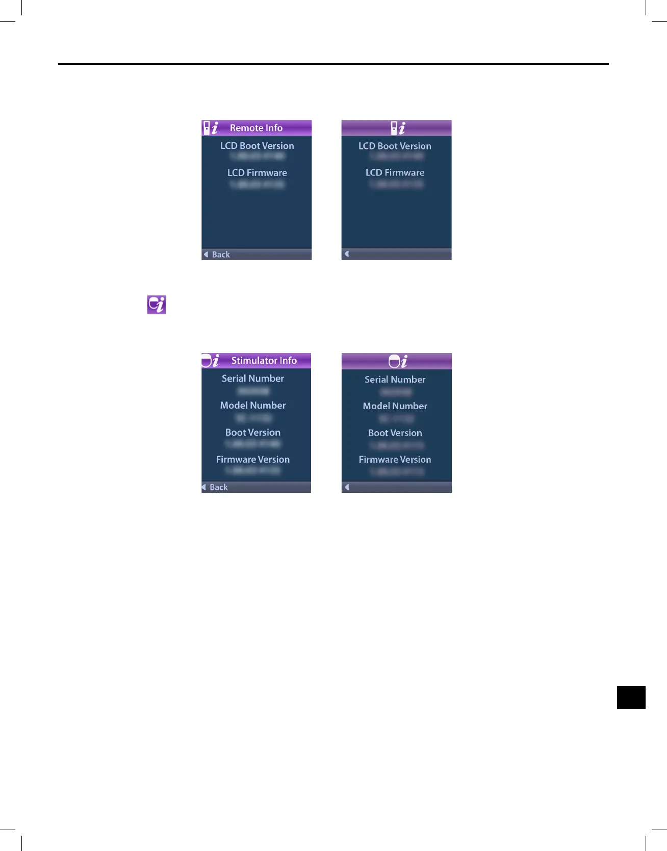Izberite možnost Stimulator Info (Informacije o stimulatorju), da si ogledate zaslon z informacijami