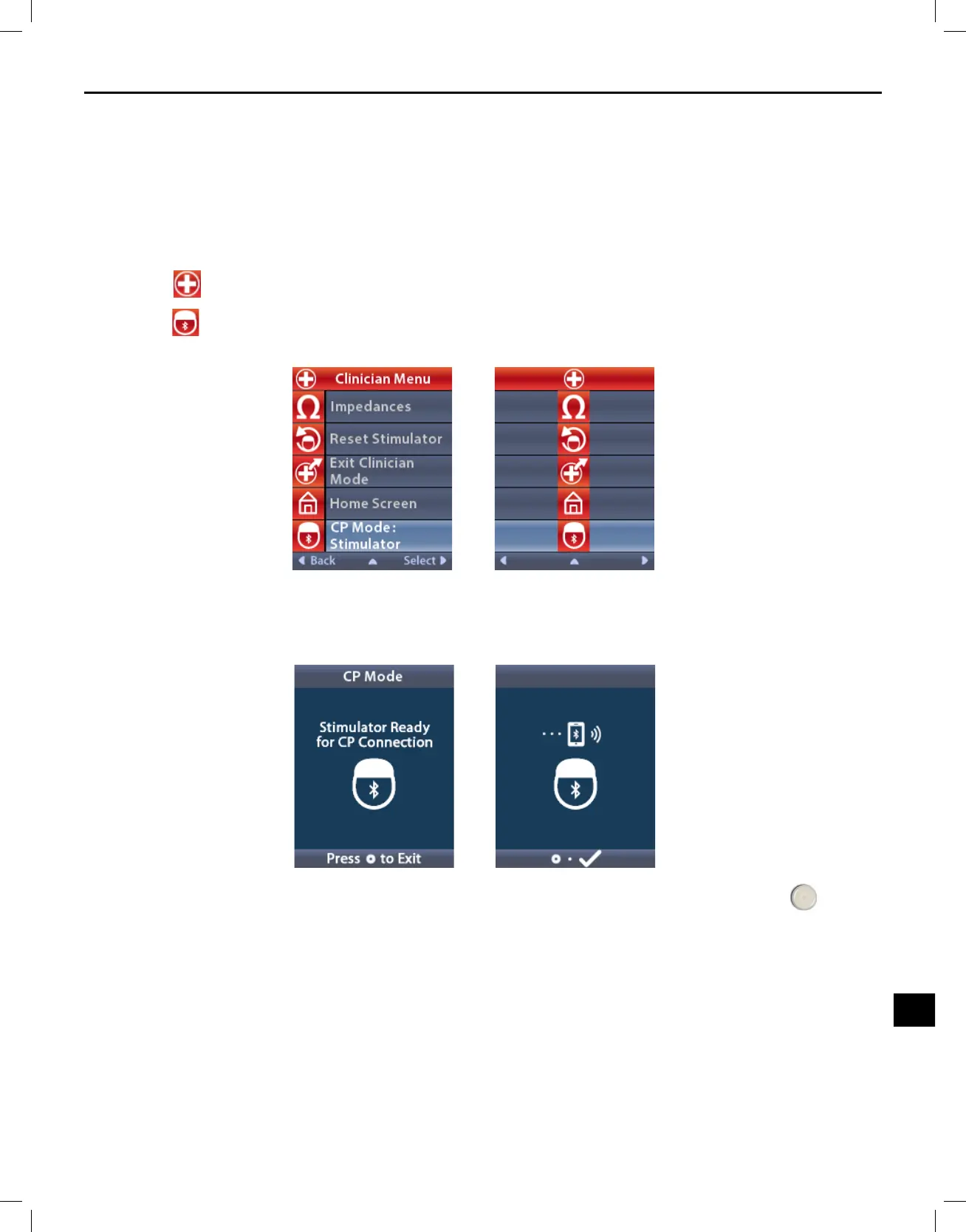3. Za izhod iz načina CP Mode (Način za zdravnikov pripomoček za programiranje) pritisnite .