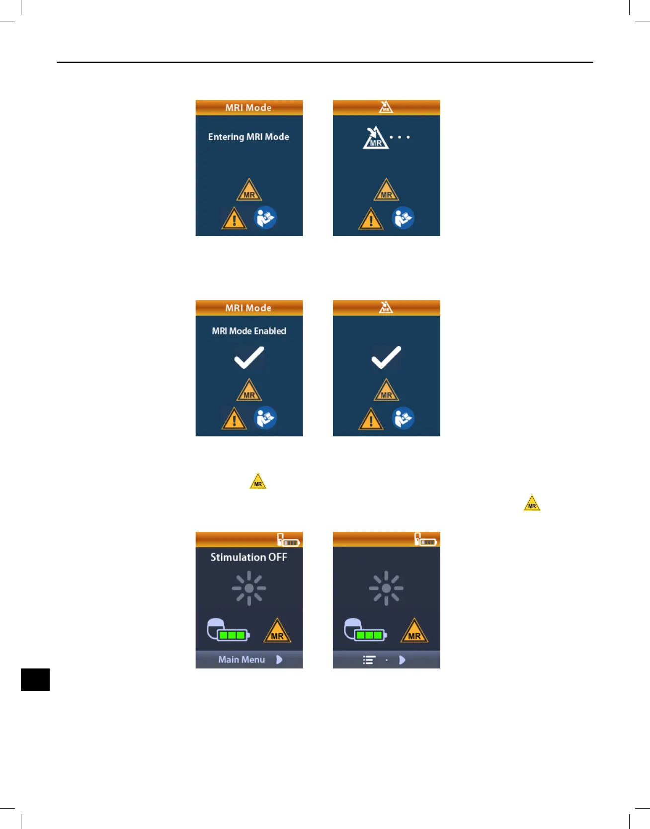 8. Če se način za slikanje z MR omogoči, se stimulacija izklopi in prikaže se potrditveni zaslon MRI