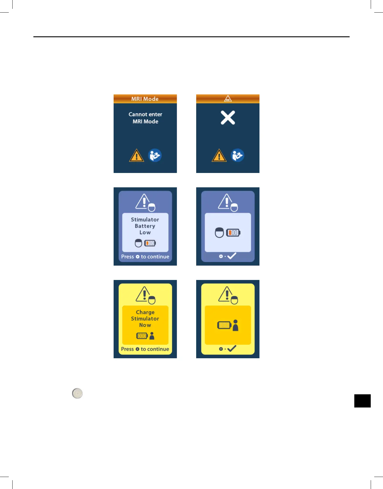 stimulatorja ni v celoti napolnjena, daljinski upravljalnik prikaže eno od naslednjih sporočil z navodilom, naj