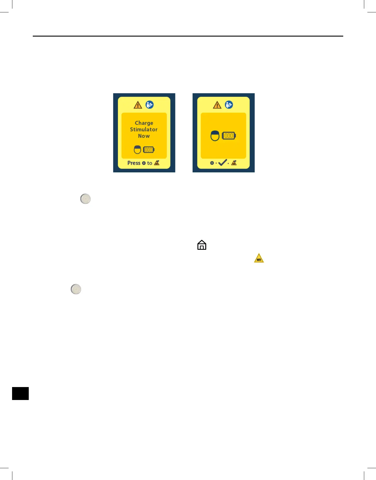 priporočeno vrednost, daljinski upravljalnik prikaže sporočilo z navodilom, naj bolnik napolni stimulator.