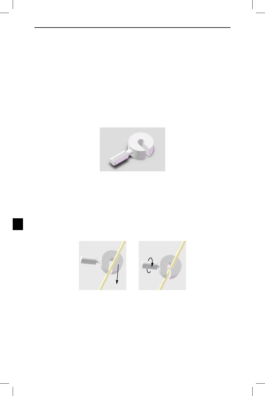 Zarážku elektrody DBS nasadíte tak, že zatlačíte elektrodu DBS do středu zarážky a utáhnete