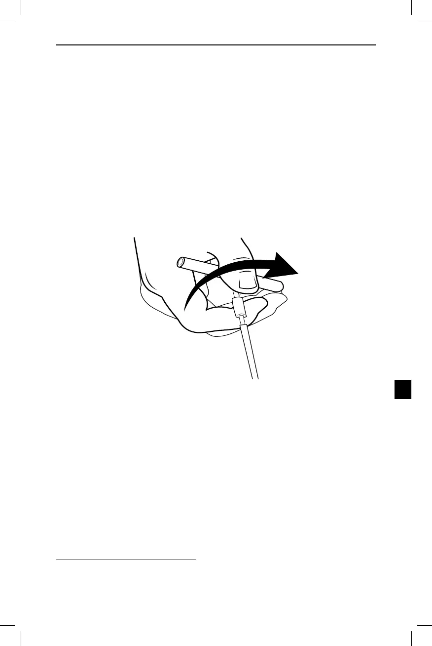 7. Špičku tunelovacieho nástroja pevne uchopte jednou rukou, druhou rukou držte kanylu na