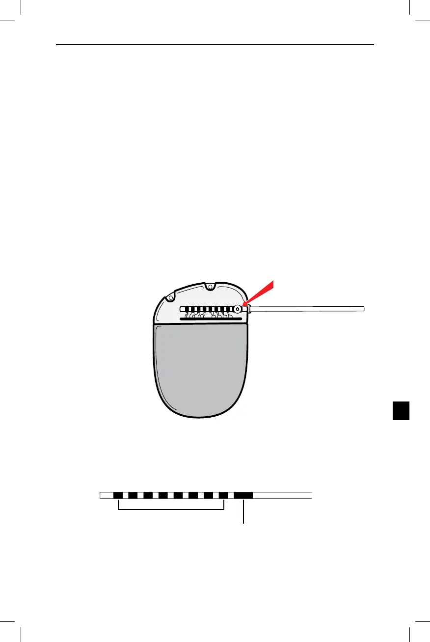 A teljes behelyezést követően a Vezeték hosszabbító hegye az IPG port hátuljába csúszik, a