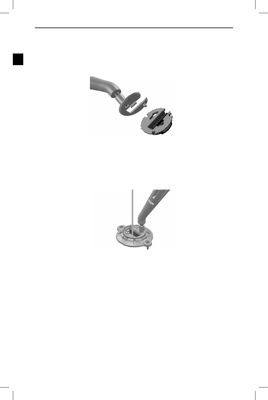 tige et l'attache de l'extrémité en fer à cheval doivent être alignées avec le trou de libération du