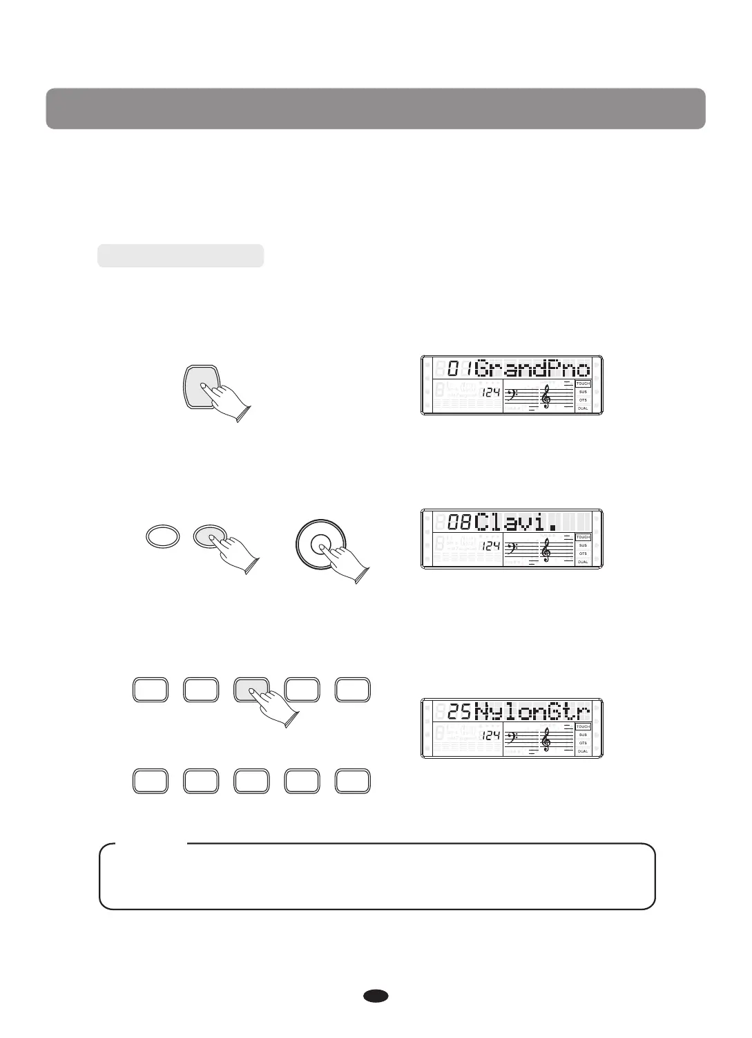 Use [+] and [-] button or [DATA CONTROL] knob to select the desired voice