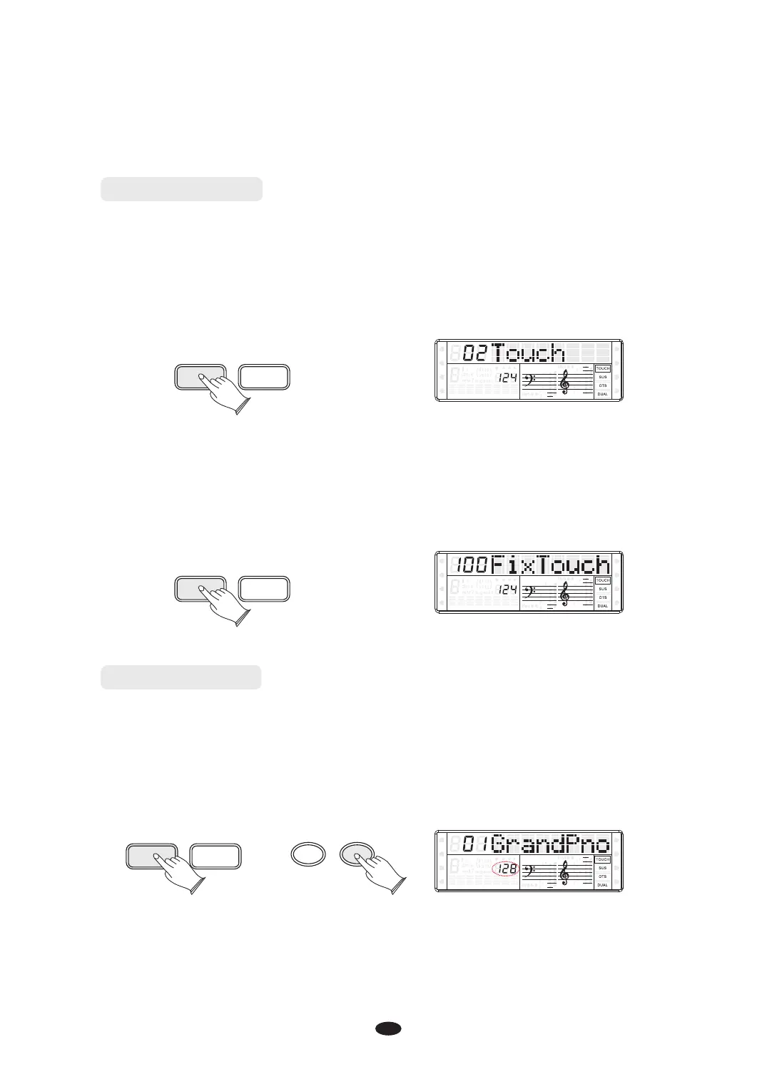 softly you play the keyboard. You can press [TOUCH] for few seconds. LCD will