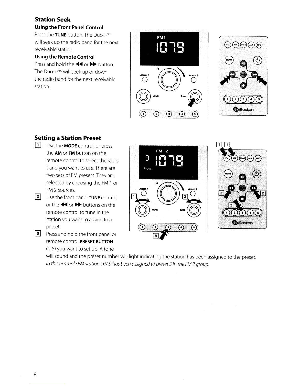 Boston Duo-i Plus - Radio Station Management; Setting and Selecting Radio Presets