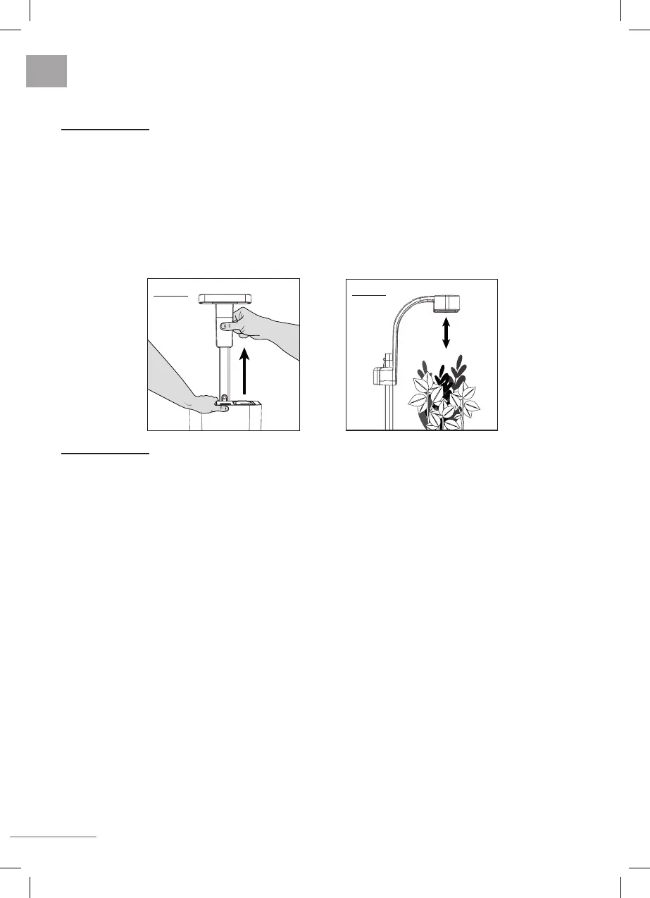 • Einstellung der Höhe: halten Sie den Indoor-Garten mit einer Hand und heben Sie den Lichtmast mit