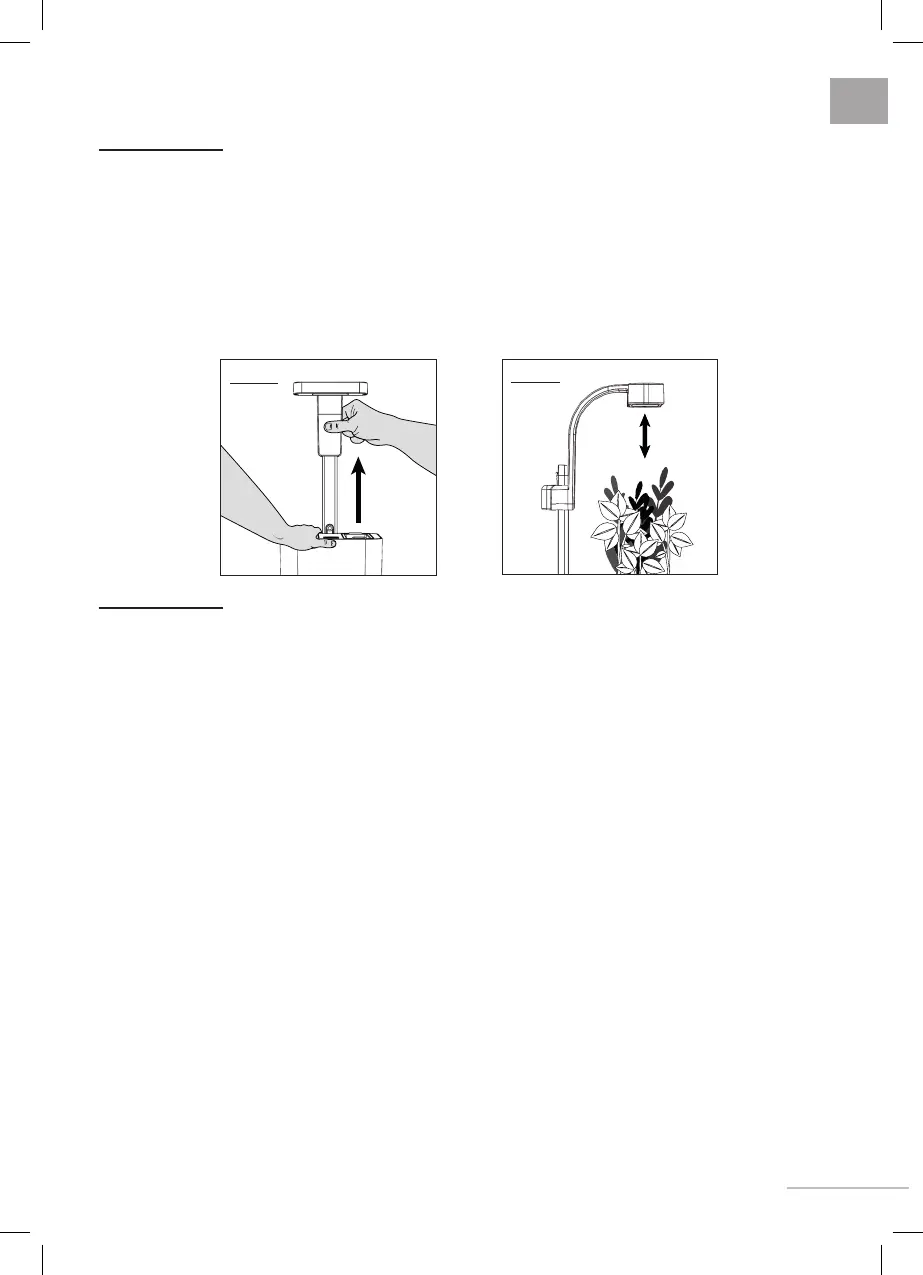•Para ajustar a altura: segure a horta interior com uma mão e levante o posto de iluminação com a outra