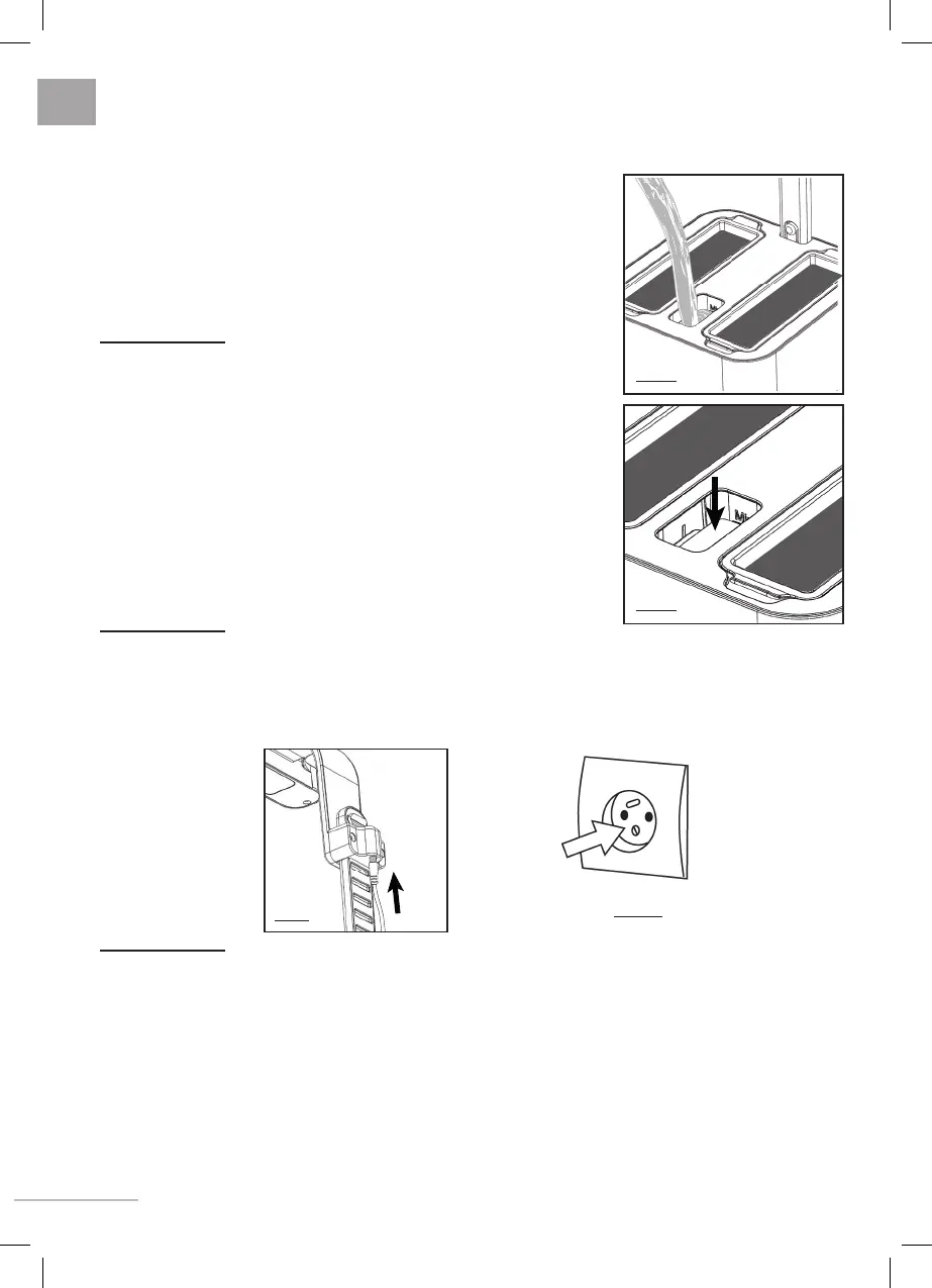 1. Fyll vattenreservoaren genom hålet i mitten (fi g 7). Använd en liten