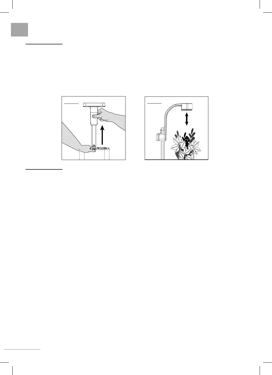 • To adjust the height: hold the indoor garden with a hand and raise the lighting pole with the other hand