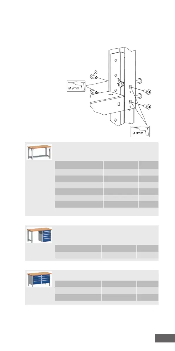 des établis standard doivent