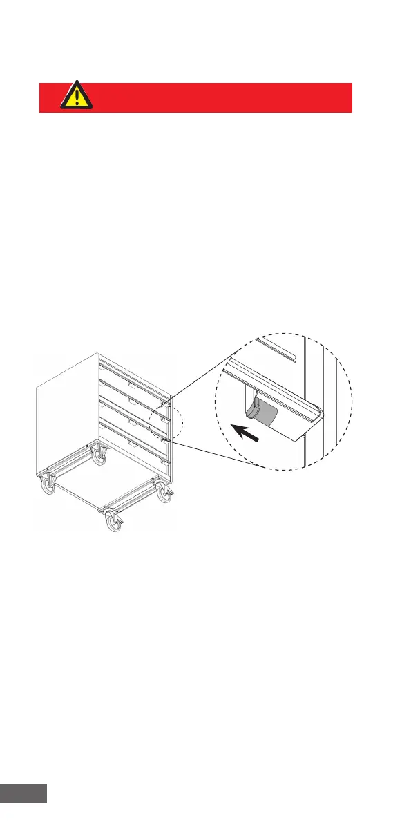 Avant d’ouvrir un tiroir, actionner le frein sur les roulettes avant