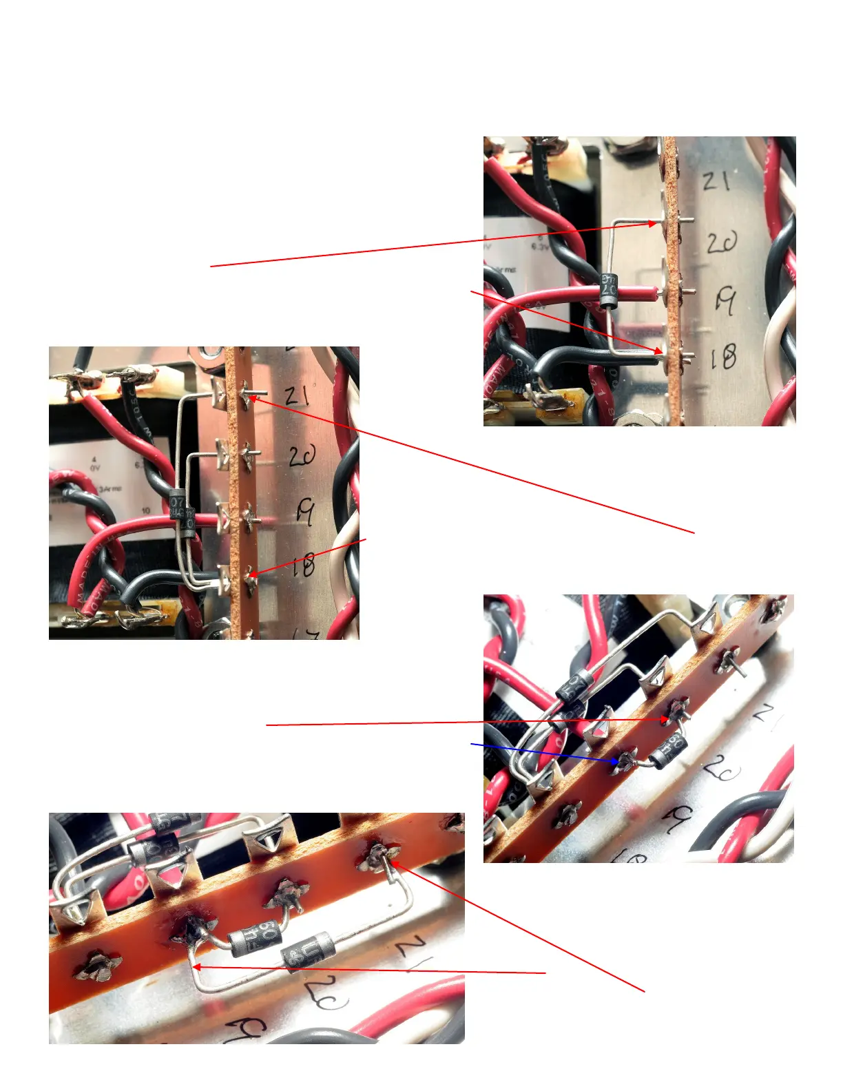 bands and stripes of the rectifier diodes and filter capacitors is absolutely critical. Refer to the