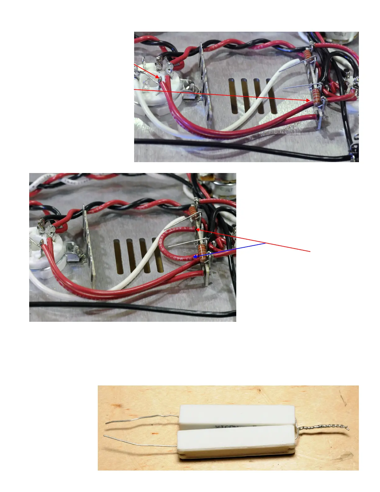 ( ) Twist one pair of the ends of the 3K ohm wirewound resistors together and solder them.