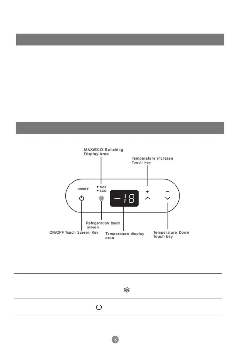 Turn on/off Hold the " " 3~5 seconds to turn on the refrigerator.