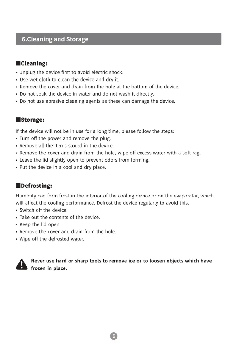 BougeRV CR 35 - Cleaning, Storage, and Defrosting; Cleaning Guidelines; Storage Procedures; Defrosting the Device