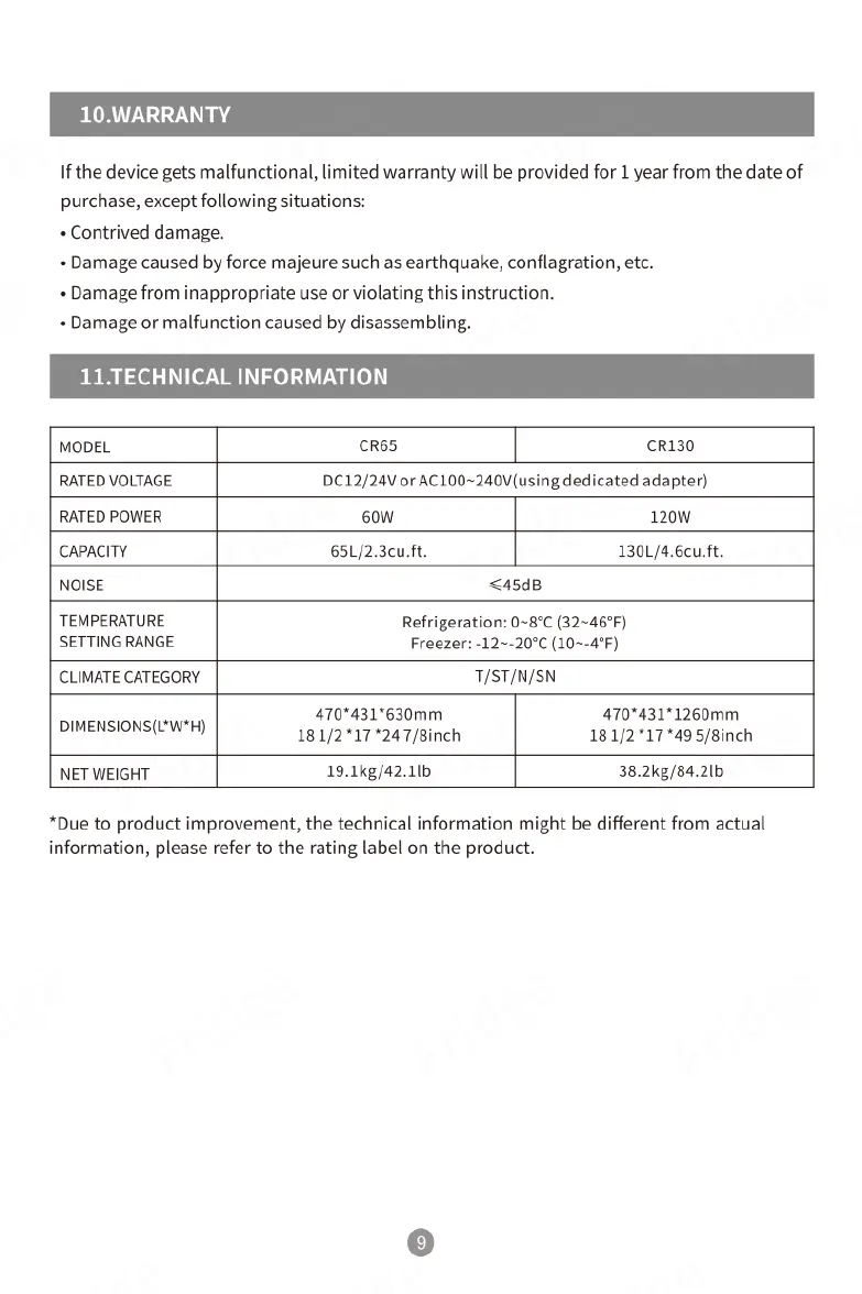 BougeRV CR65 - Warranty Information; Technical Specifications
