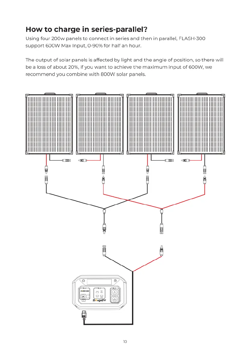 BougeRV FLASH-300 - Series-Parallel Solar Charging; Configuration for 600 W Input; Optimizing Solar Input