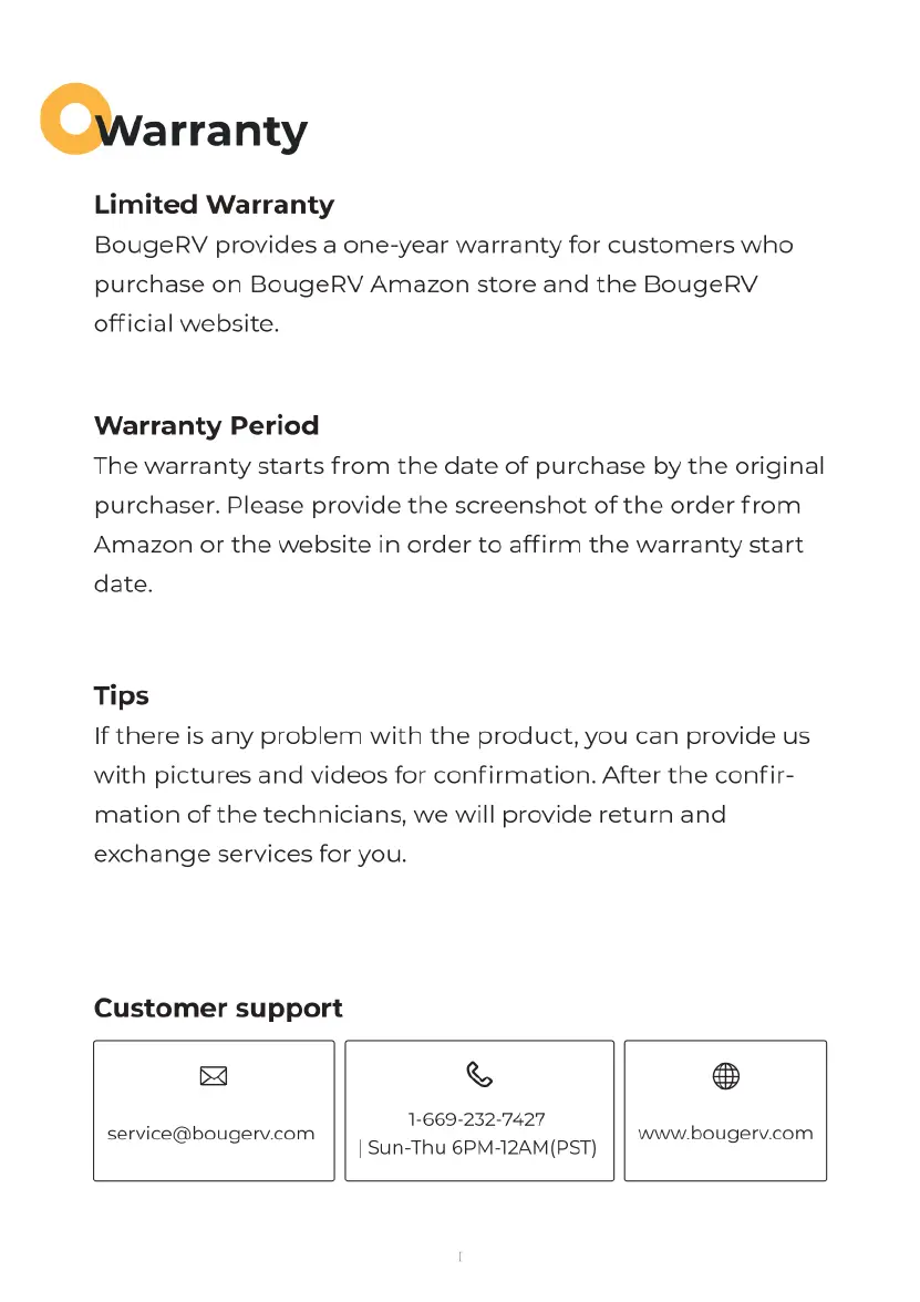 BougeRV FLASH-300 - Warranty; Limited Warranty; Warranty Period; Customer Support