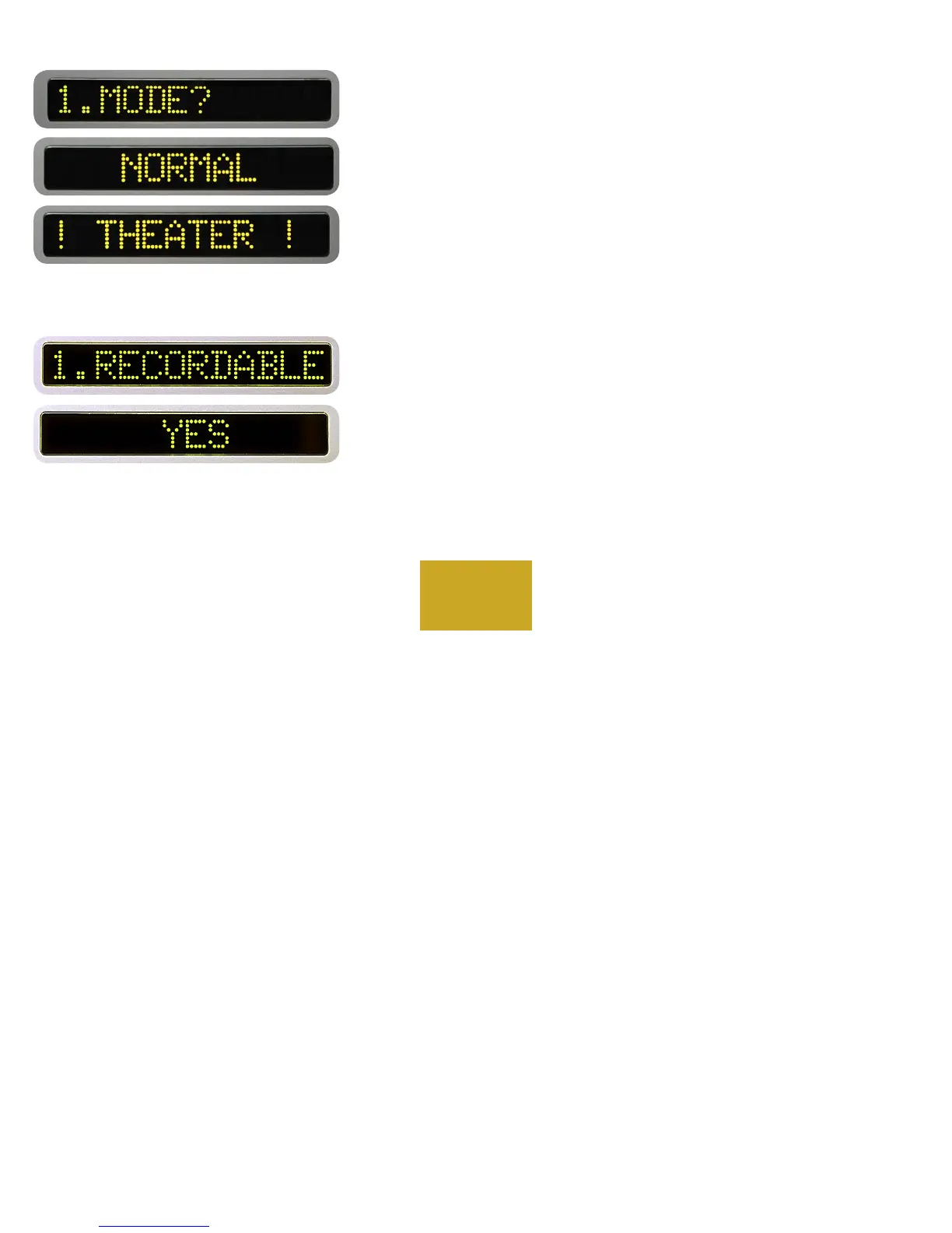 “1.RECORDABLE” will show in the left display and “YES” will