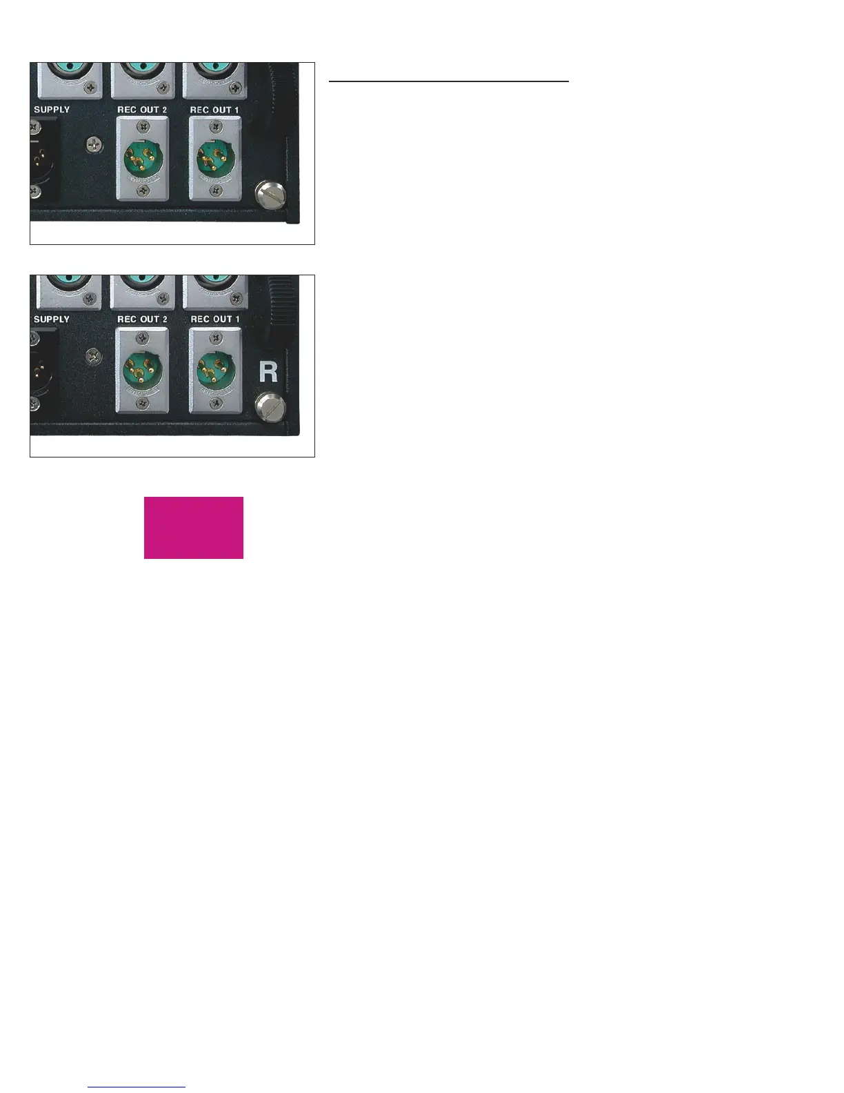 Two record outputs labeled “REC OUT 1” and “REC OUT 2” are