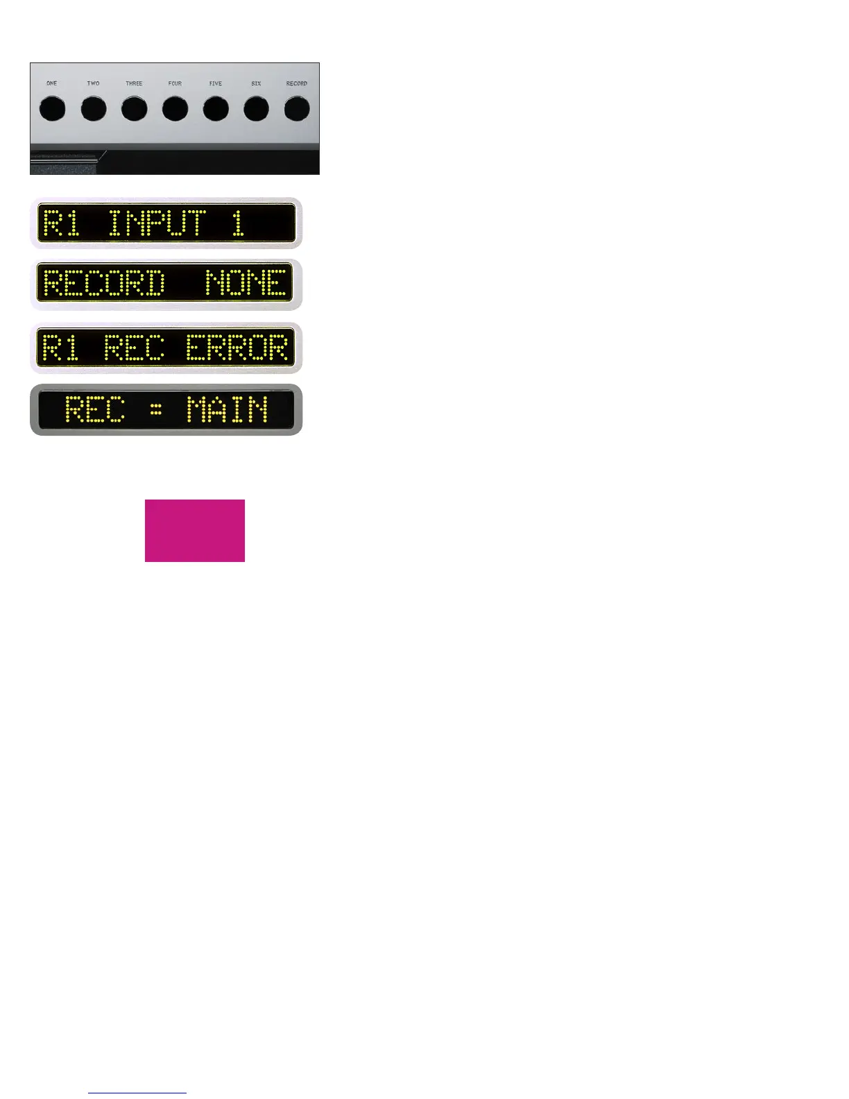 Any one of the 6 inputs may be routed to the record outputs. Select