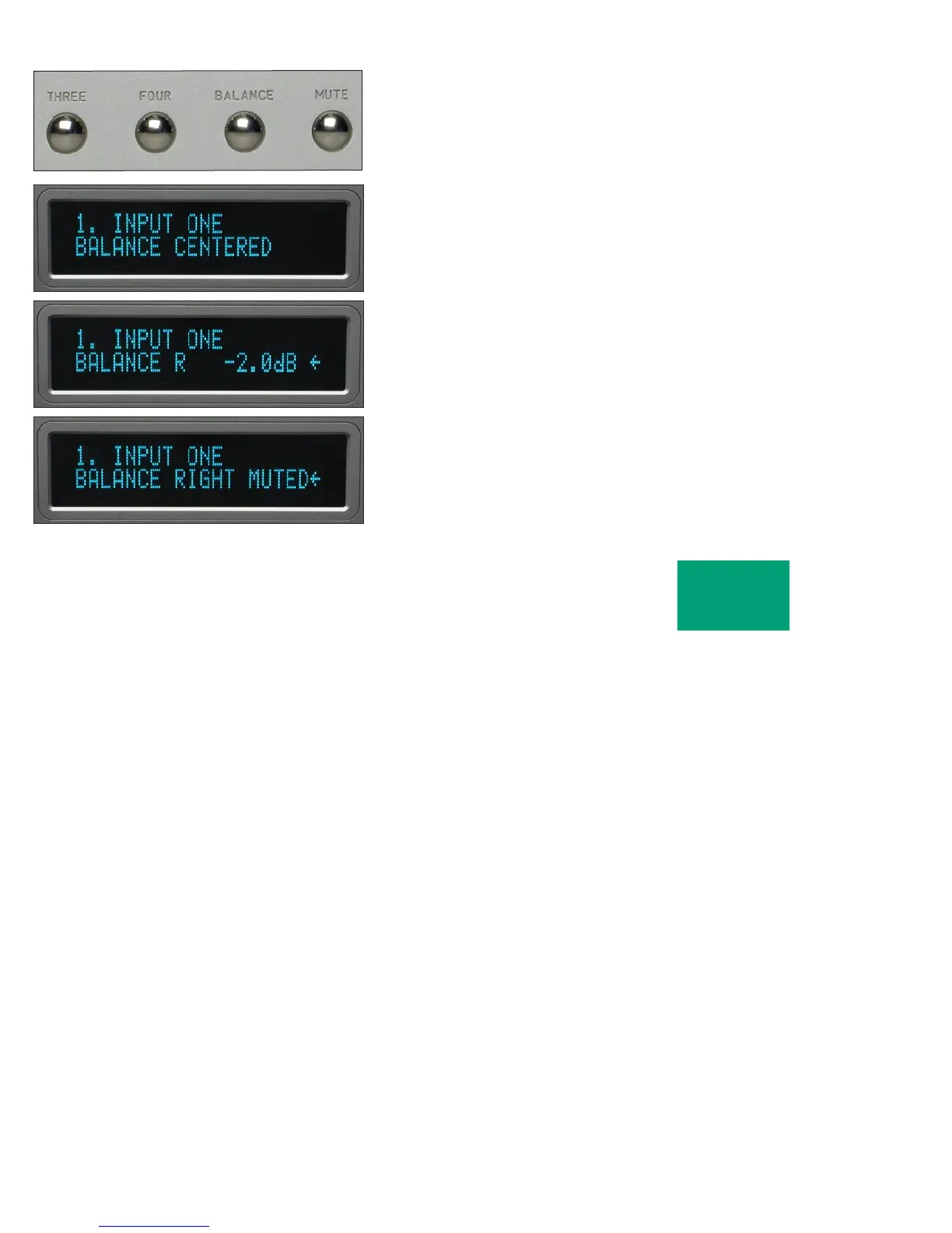 such as “BALANCE R -2.0dB < “ in the display. This means that the right