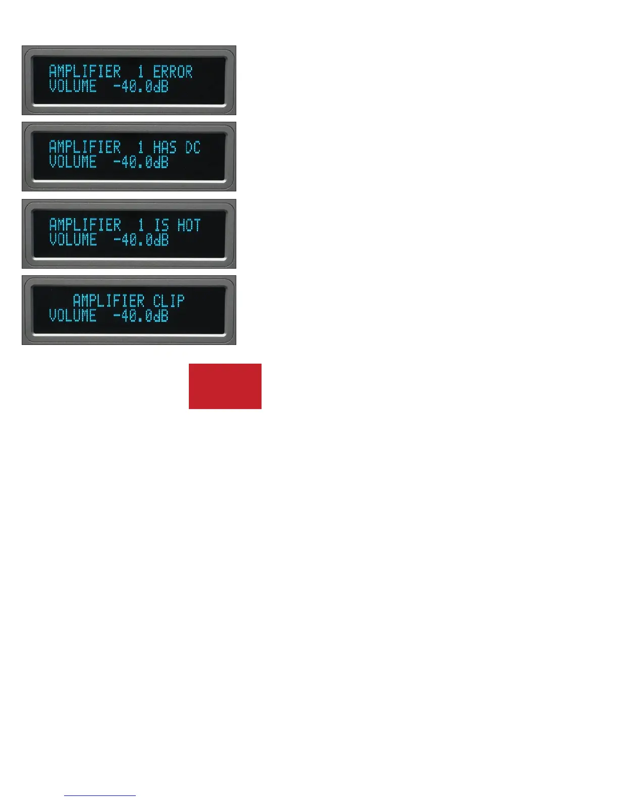 “AMPLIFIER 1 ERROR” means that an internal power supply has