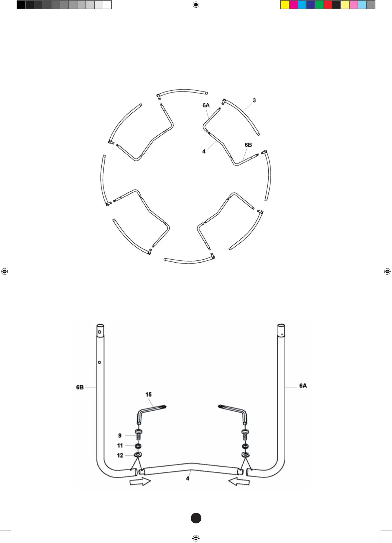 Align the holes and secure them together using parts (9), (11) and (12) with the Allen Wrench (15) as shown