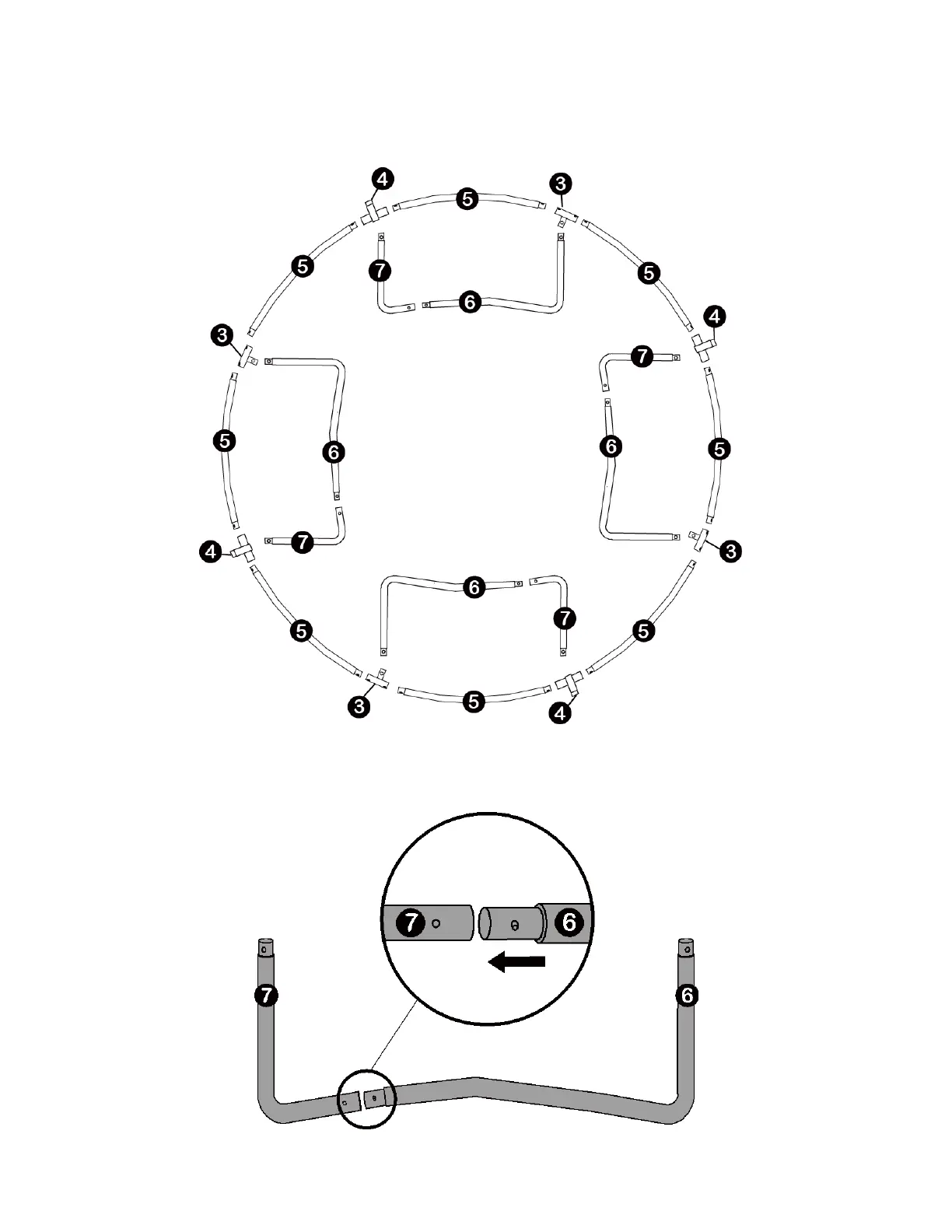Connect Parts 6 and 7. Repeat to assemble three sets of leg supports.