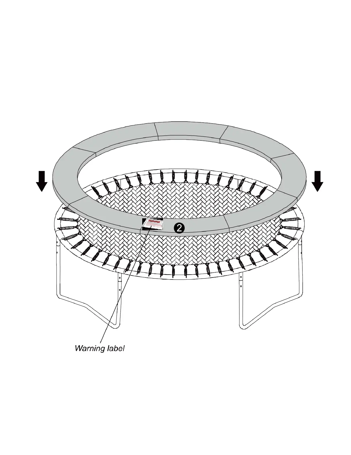 Place Frame Pad (# 2) onto the trampoline. Make sure all metal frame parts and springs are covered.