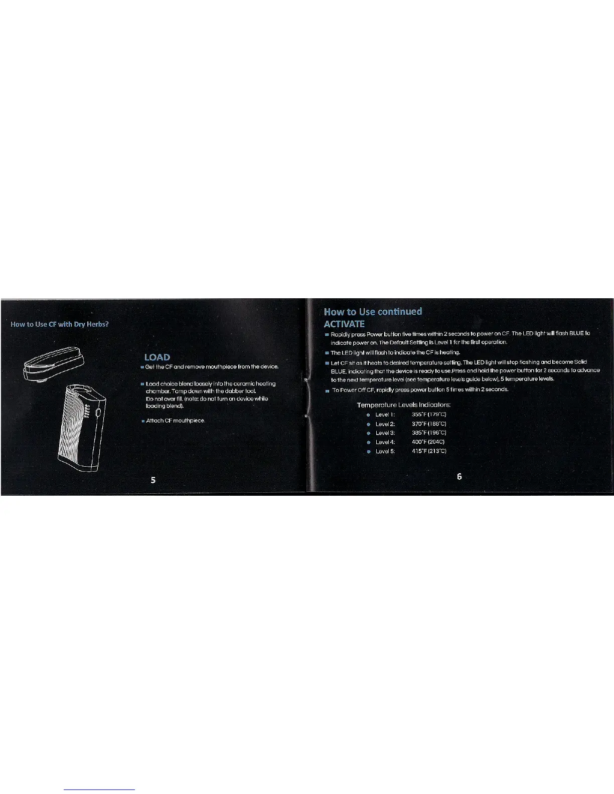Boundless CF VAPE - Using the CF Vaporizer; Using with Dry Herbs; Temperature Levels Guide