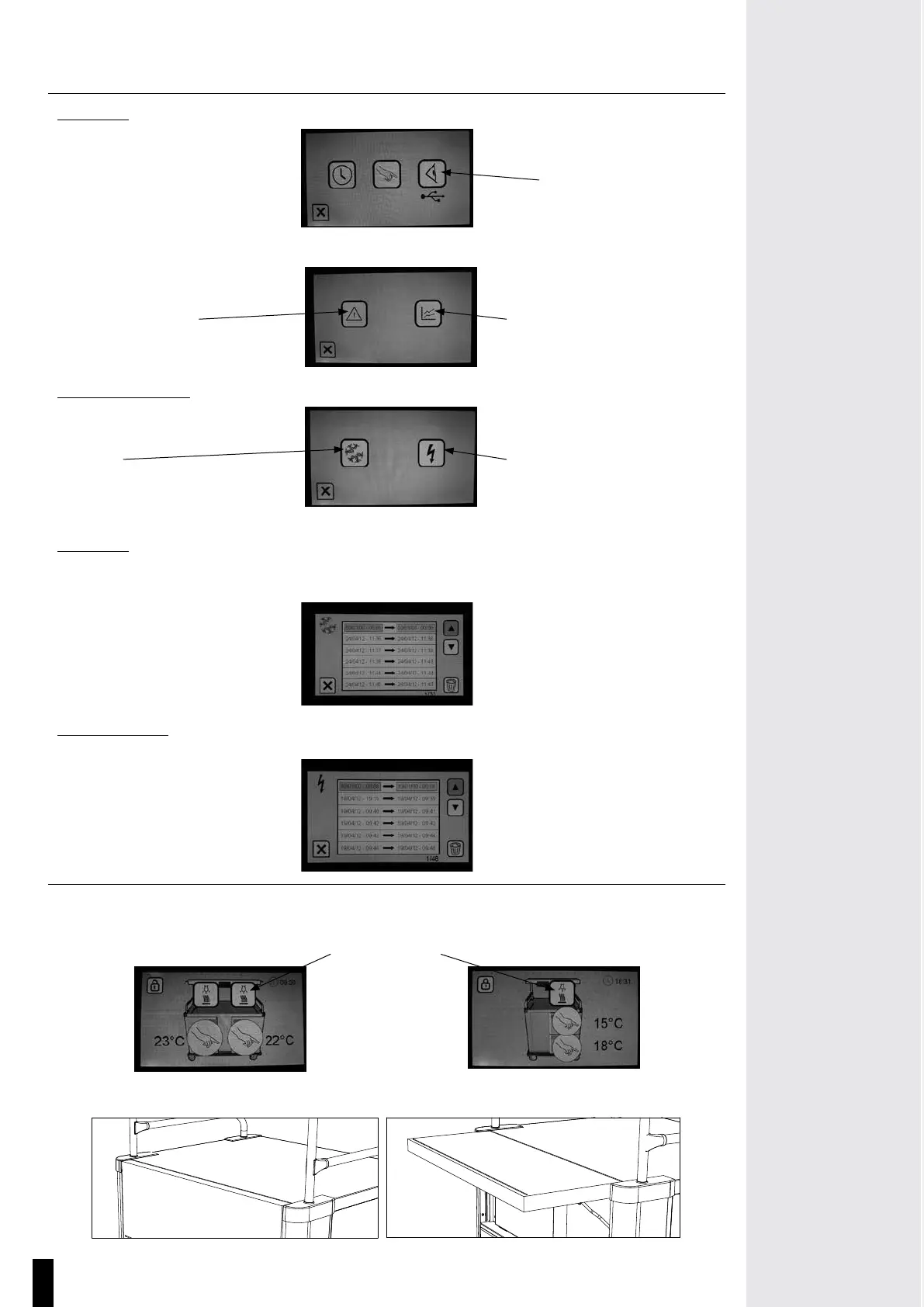 y La messa in funzione delle lampade e delle piastre riscaldanti viene fatta direttamente dalla schermata principale premendo sui