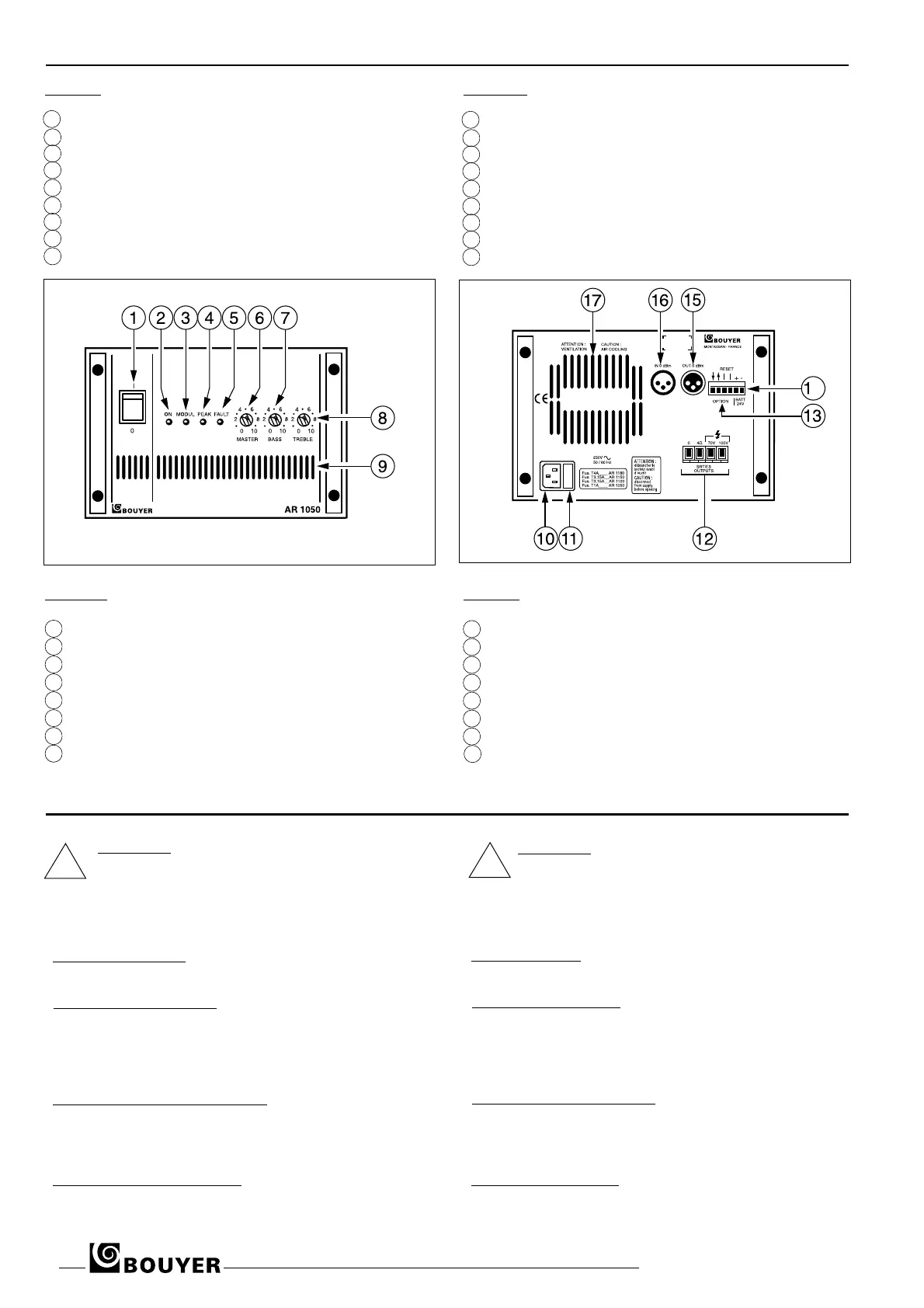 15 Sortie XLR symétrique 0 dBm (parrallèle à l'entrée)