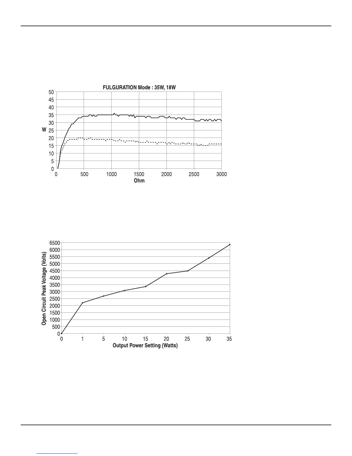 Bovie Aaron 950 - Figure a - 7 Output Power Versus Impedance for Fulguration Mode; Figure a - 8 Peak Voltage Versus Power Setting for Fulguration Mode
