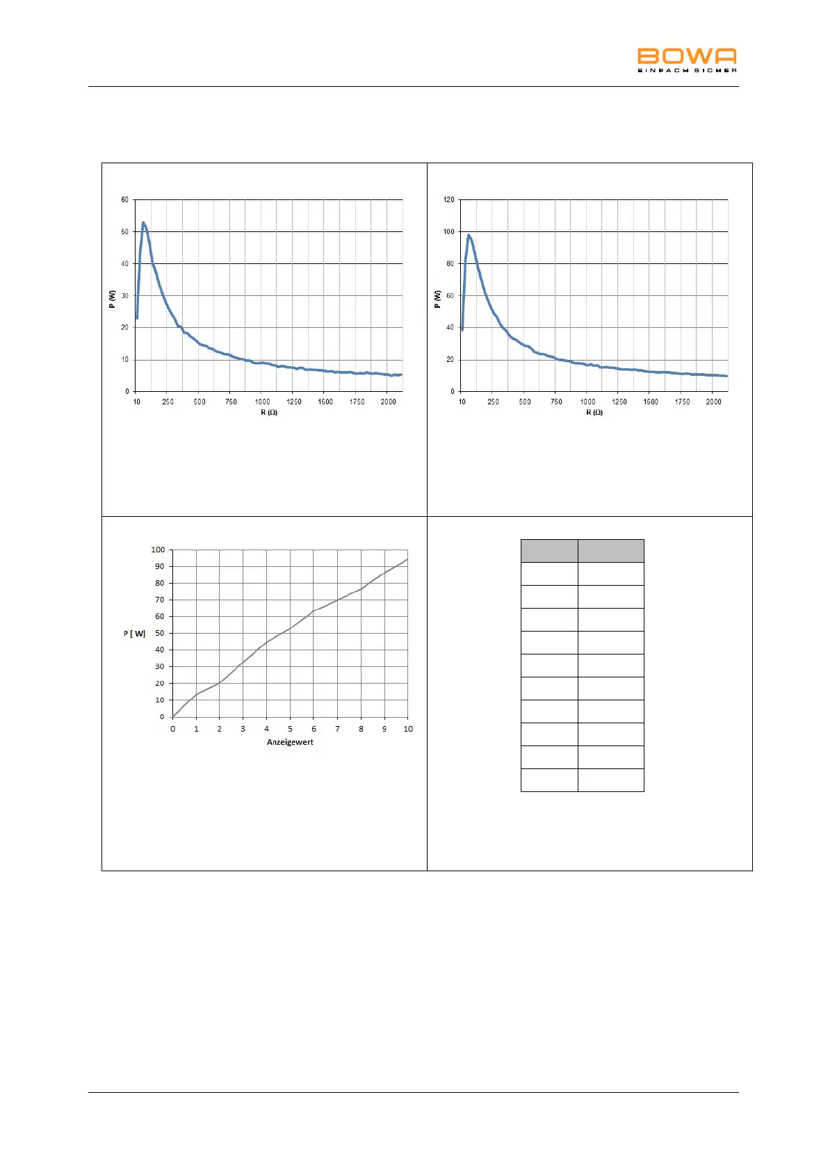 Graph of output power P [W] as a