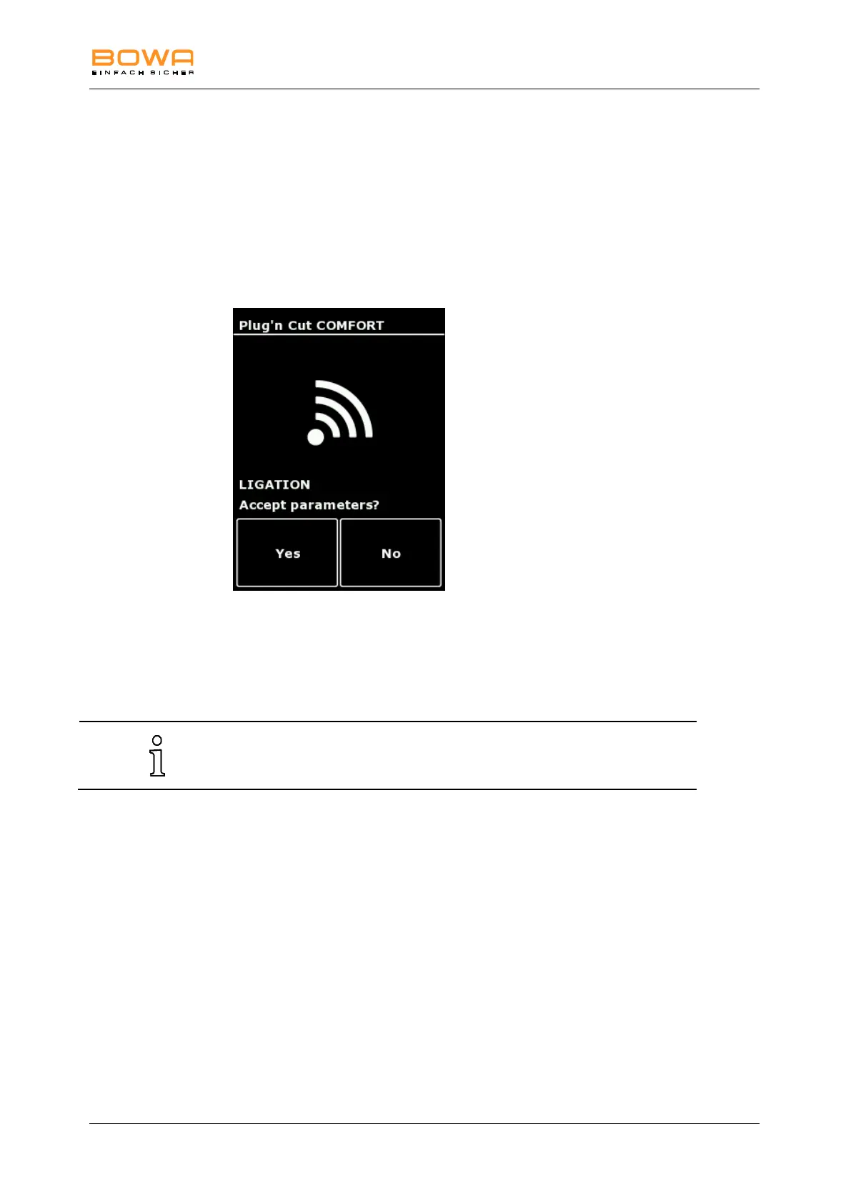 2. Confirm the selection of preferred parameters with "Yes".