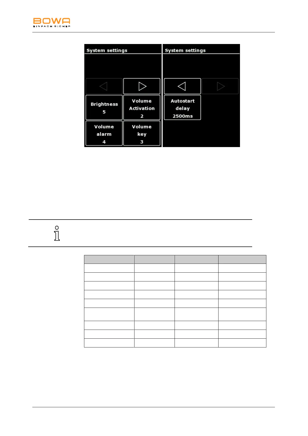 1. To change the system settings, tap the desired parameter.