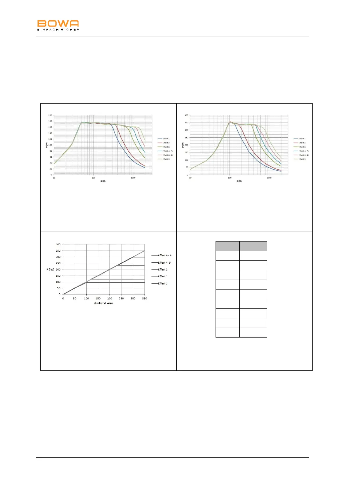 Diagram of power output P [W] as a